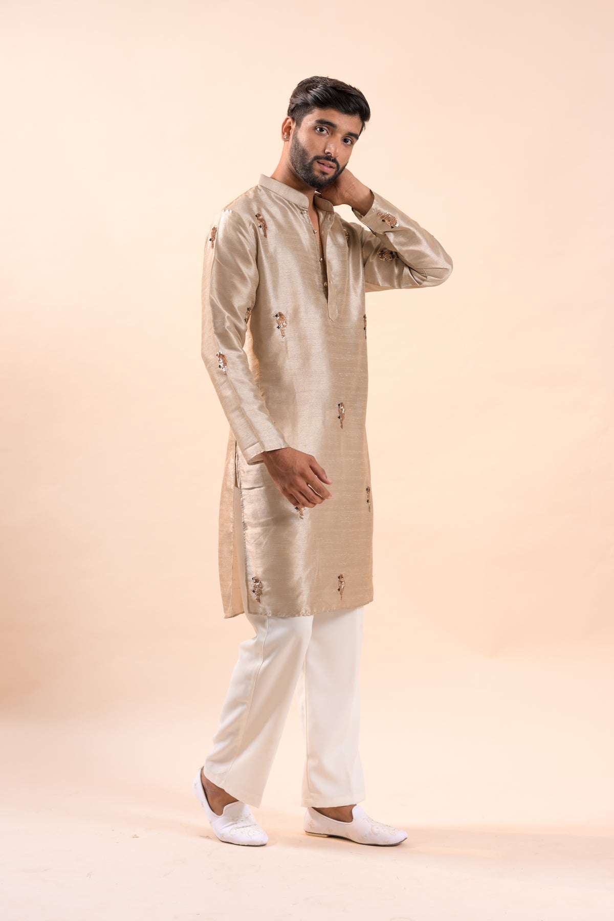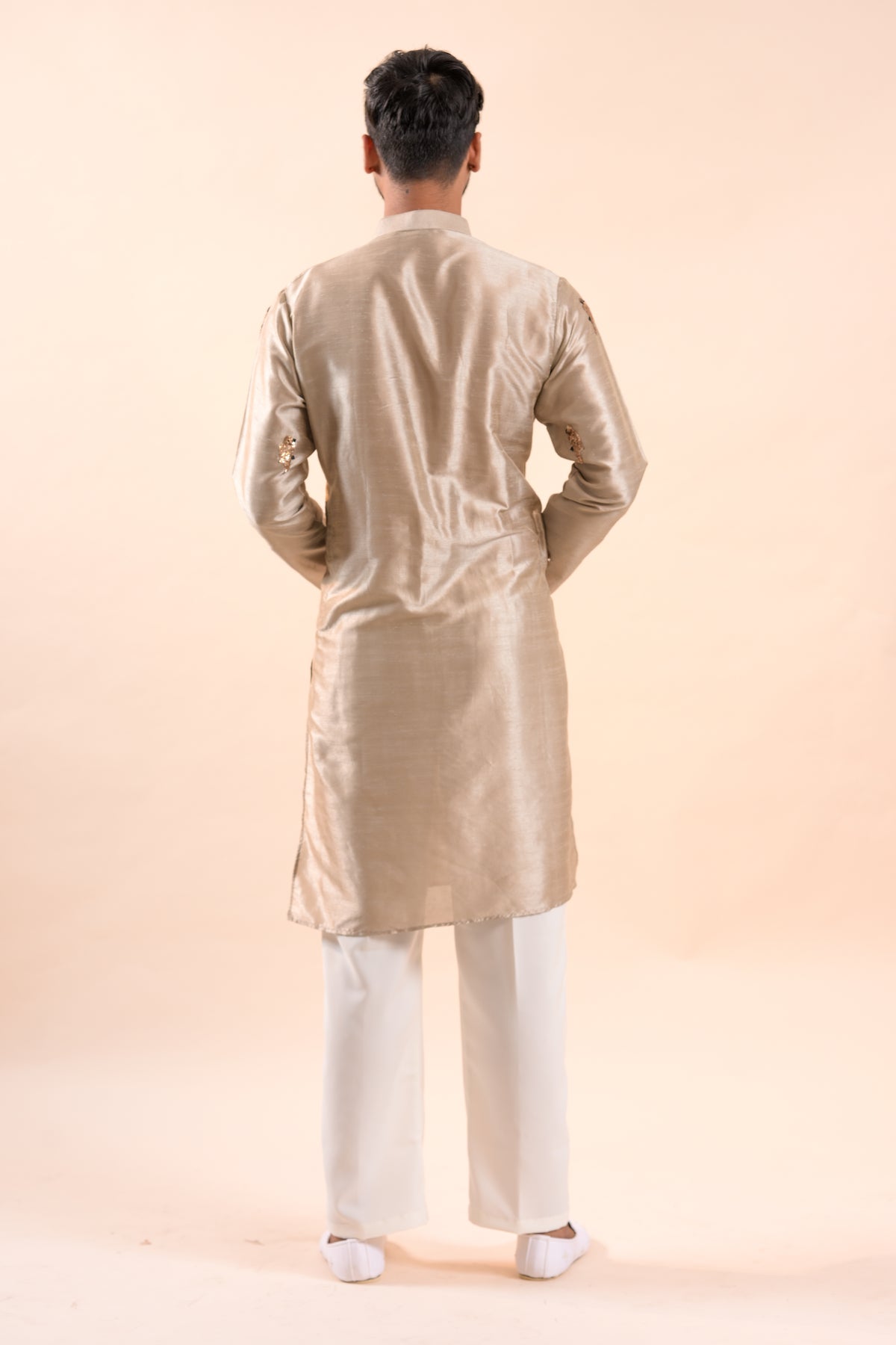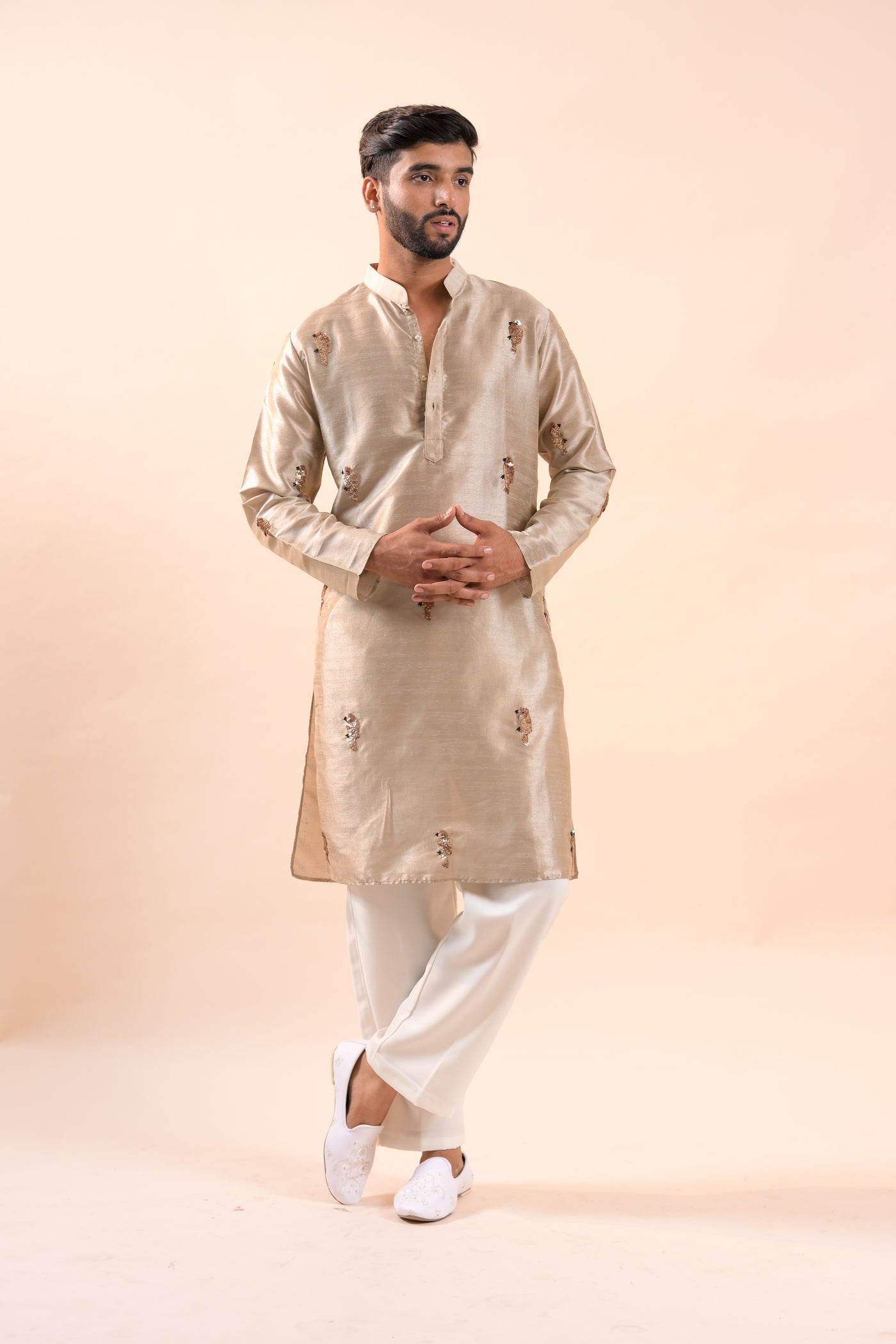 Richart as a brand brings you quality and affordability. In market since 2015 we take pride in our commitment to maintain quality standards in each piece manufactured by us. This special outfit from richart stands out because of its stylish self design kurta . The kurta is made up of cotton silk fabric and bottom is 100% cotton. This set comprises of a coloured kurta & white churidar pyjama. Team this outfit with embroidered mojris and look apart on special occasions. Product size guidance (a): please refer to chest size measurement in the size chart for your correct size. Style: kurta & pant set Fabric: silk blend . Wash care: wash dry clean recommended