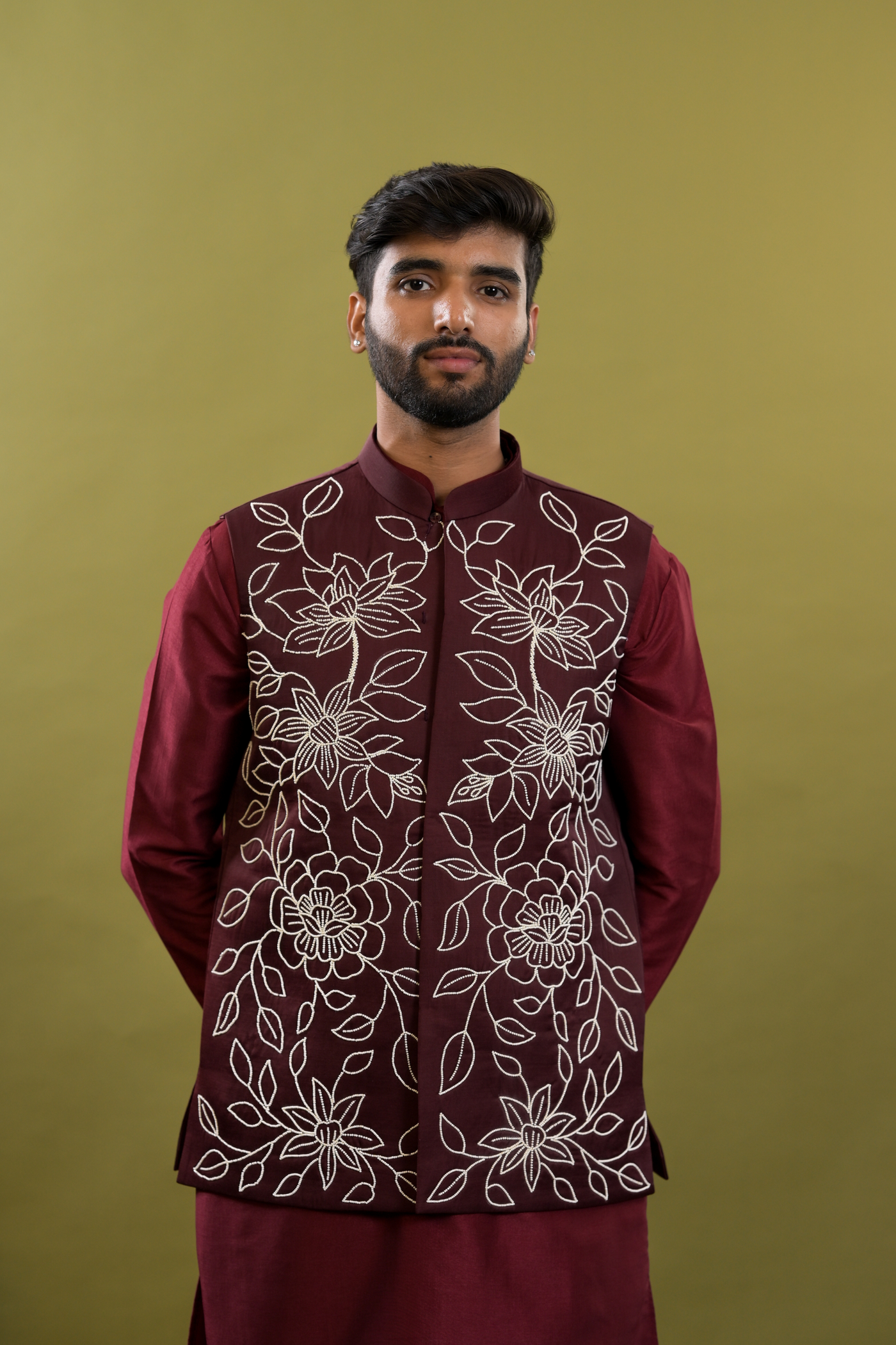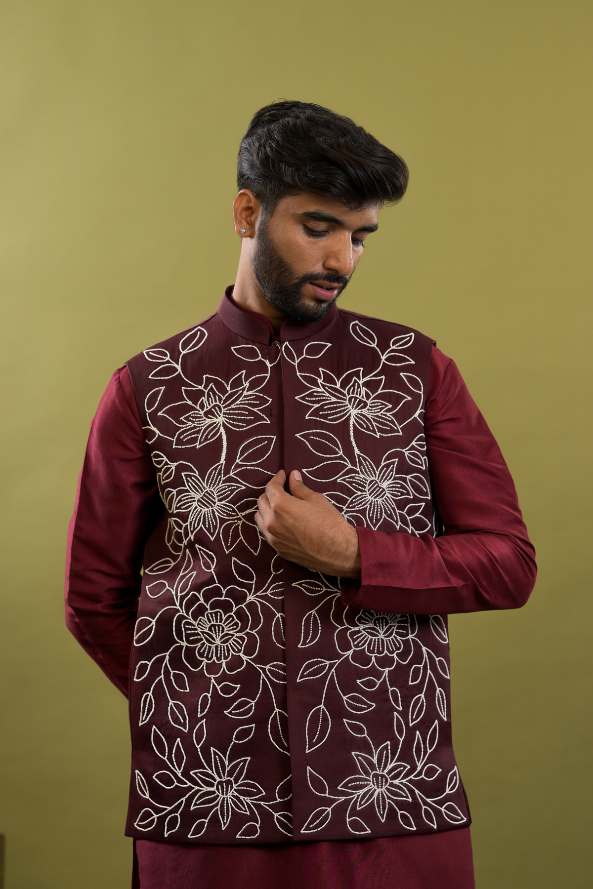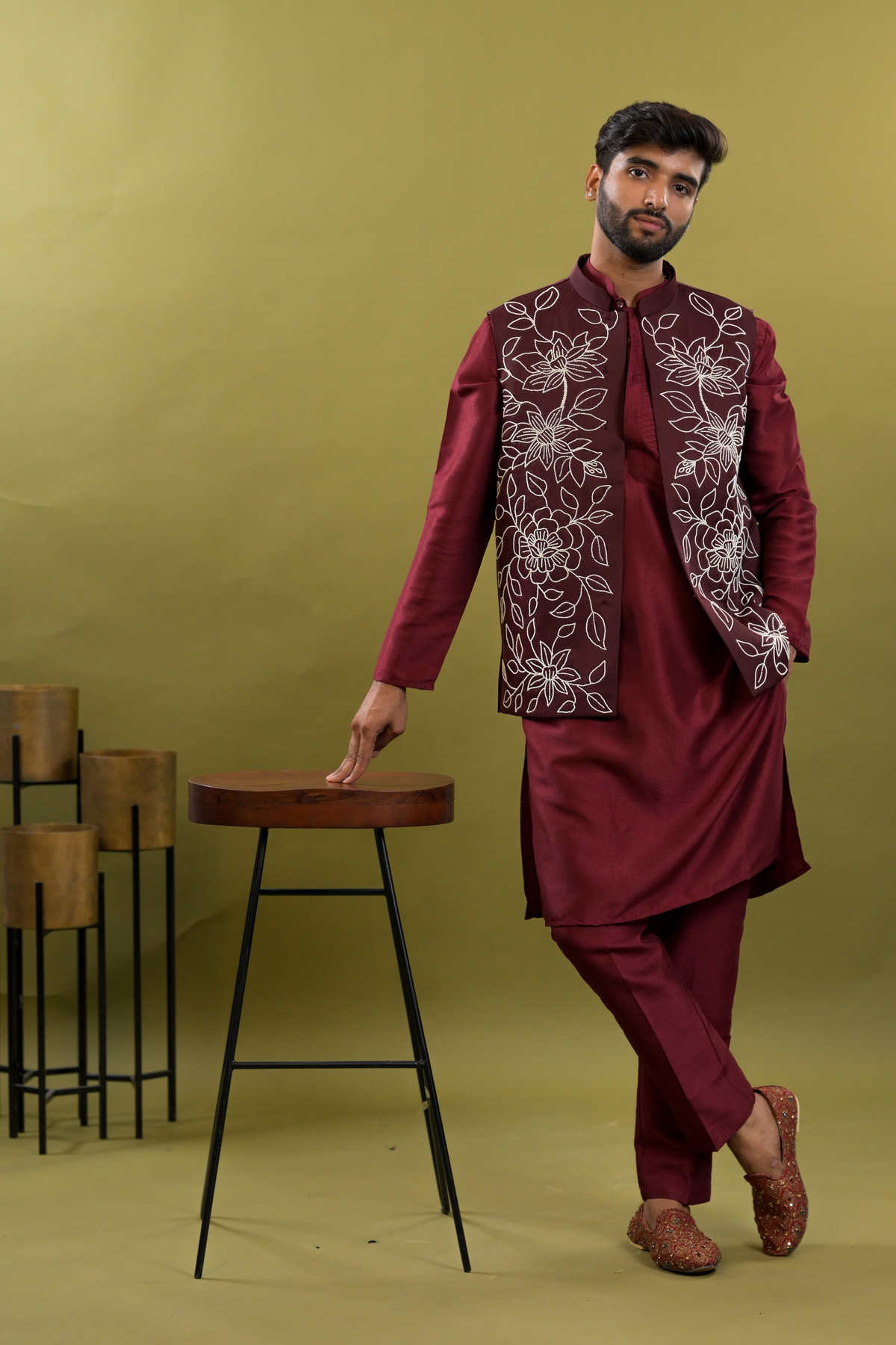 Handwork Nehru Jacket with kurta pyjama set For Men | Modi Jacket 3 piece set | Indian wedding wear outfits | waistcoat | kurta pant with jacket
