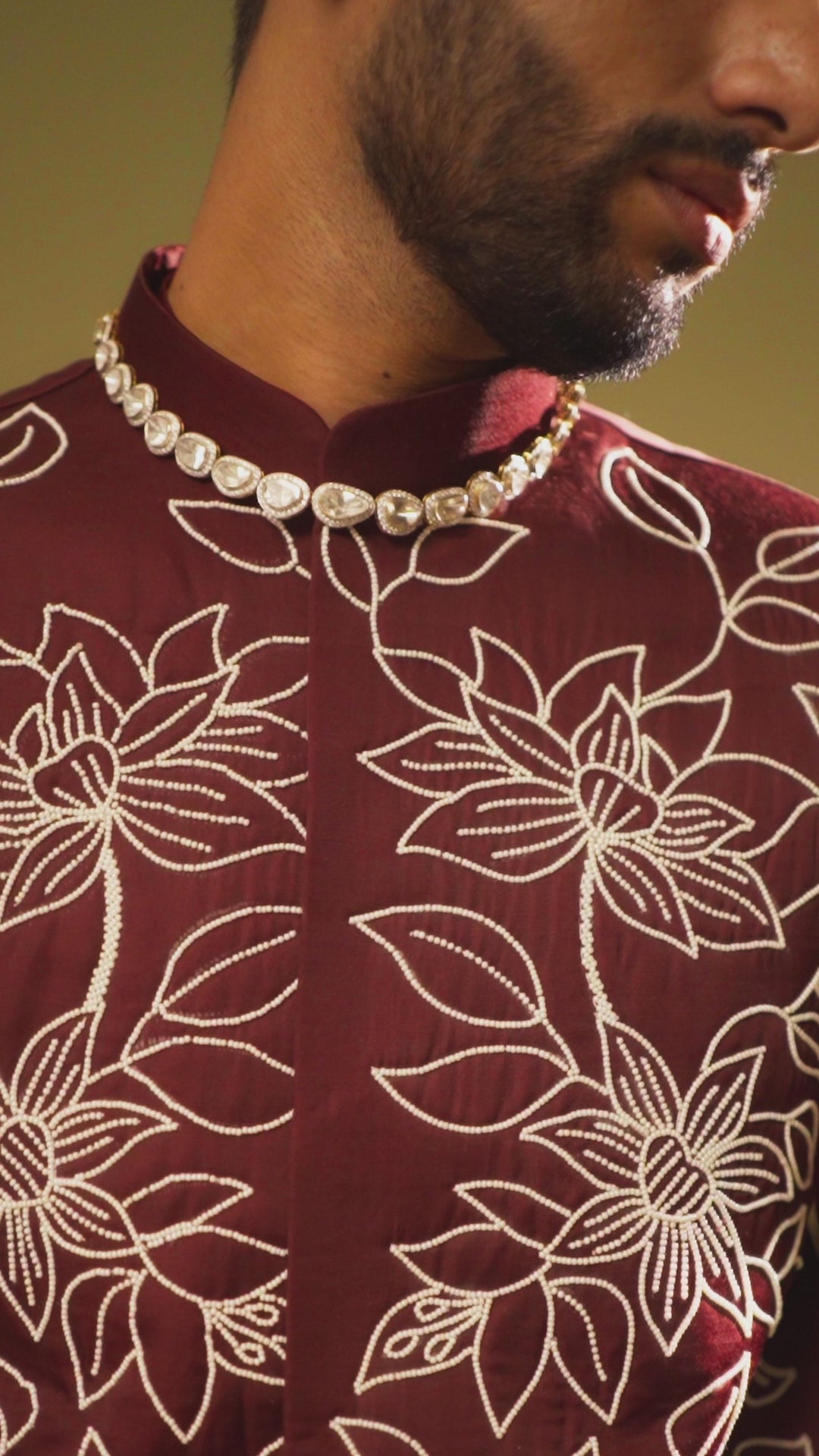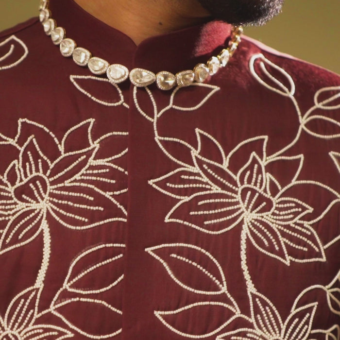 Handwork Nehru Jacket with kurta pyjama set For Men | Modi Jacket 3 piece set | Indian wedding wear outfits | waistcoat | kurta pant with jacket - red / 38