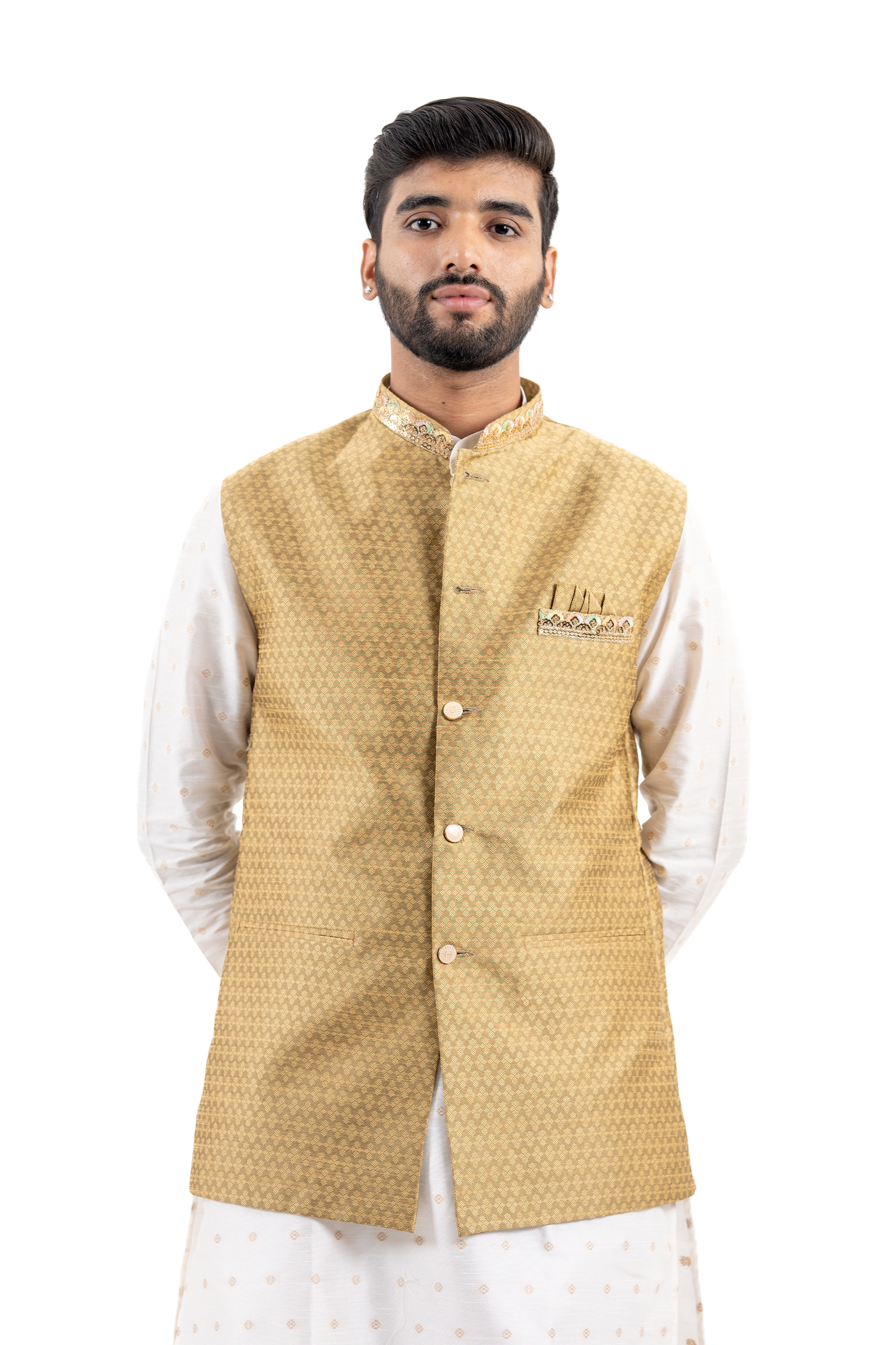 Nehru Jacket For Men | Modi Jacket | Jodhpuri jacket | Wedding jacket for men | Groom or Groomsmen outfit | Festive outfit for men - GOLDEN / 38