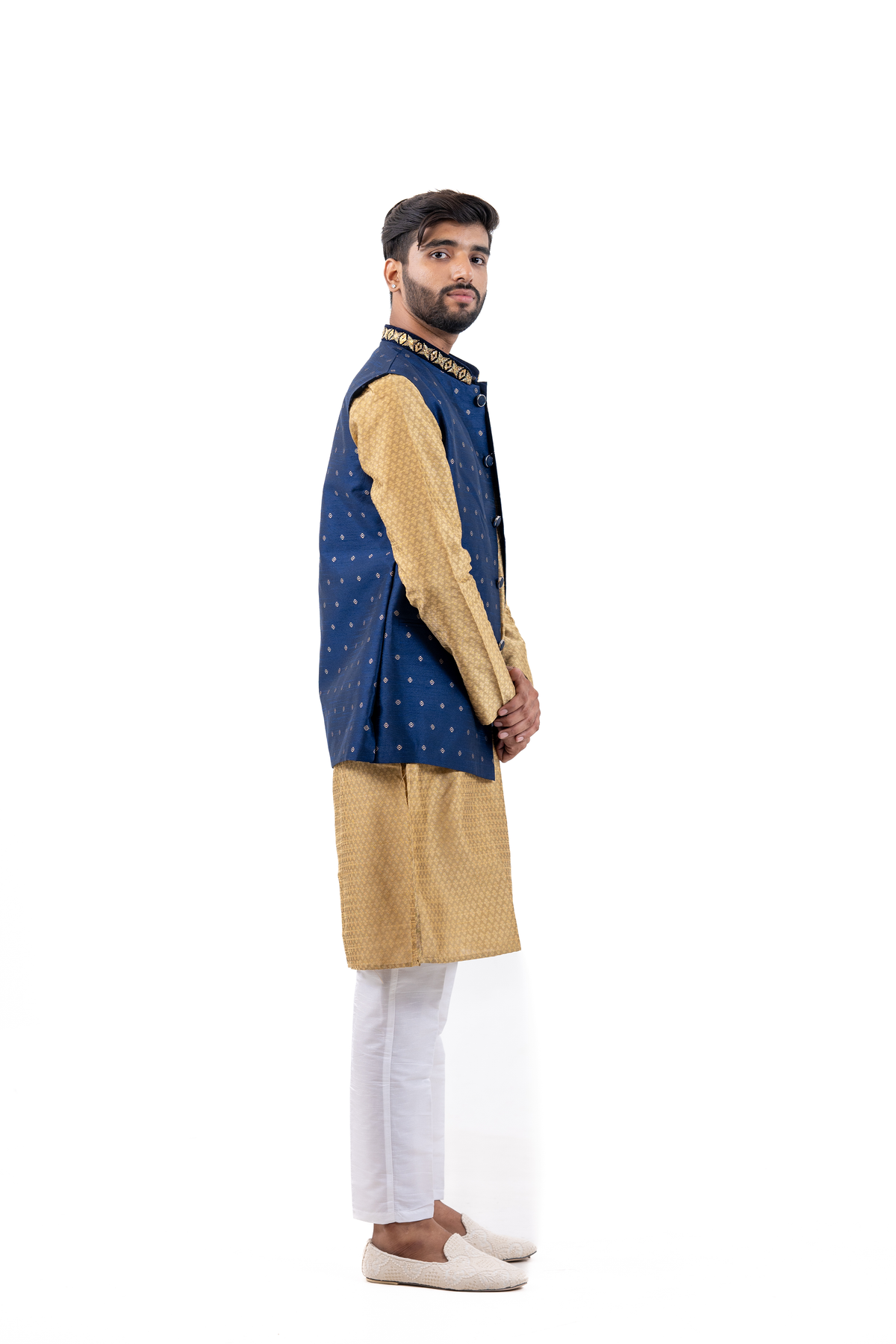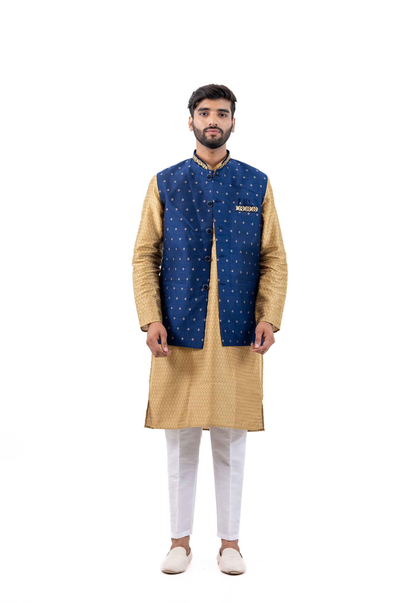 HandWork Nehru Jacket For Men | Modi Jacket | Jodhpuri jacket | Wedding jacket for men | Groom or Groomsmen outfit | Festive outfit for men - Blue / 38