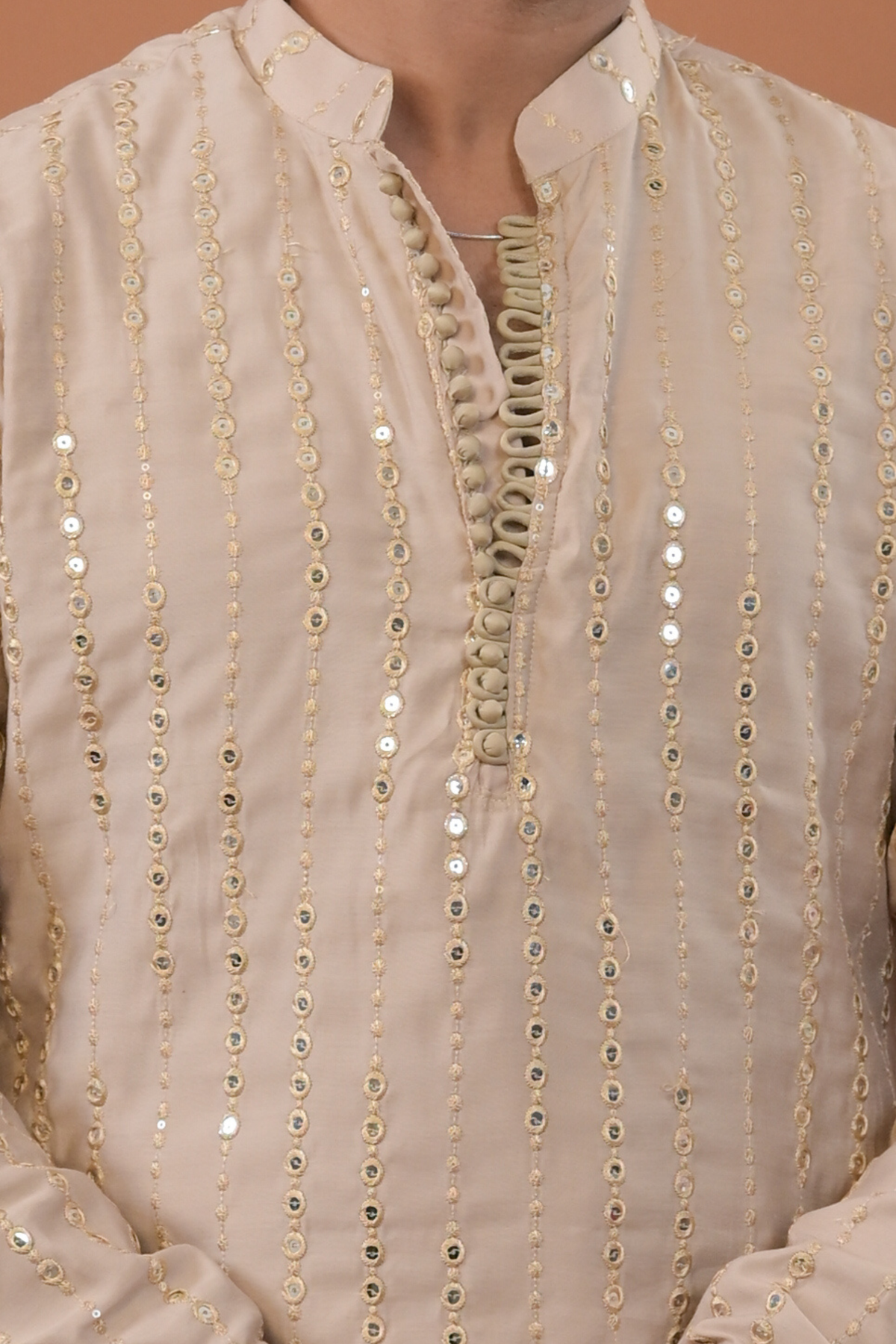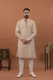 Beige Handwork Mens Kurta & Pants Set | Festive Outfit for men | Groom or Groomsmen outfit