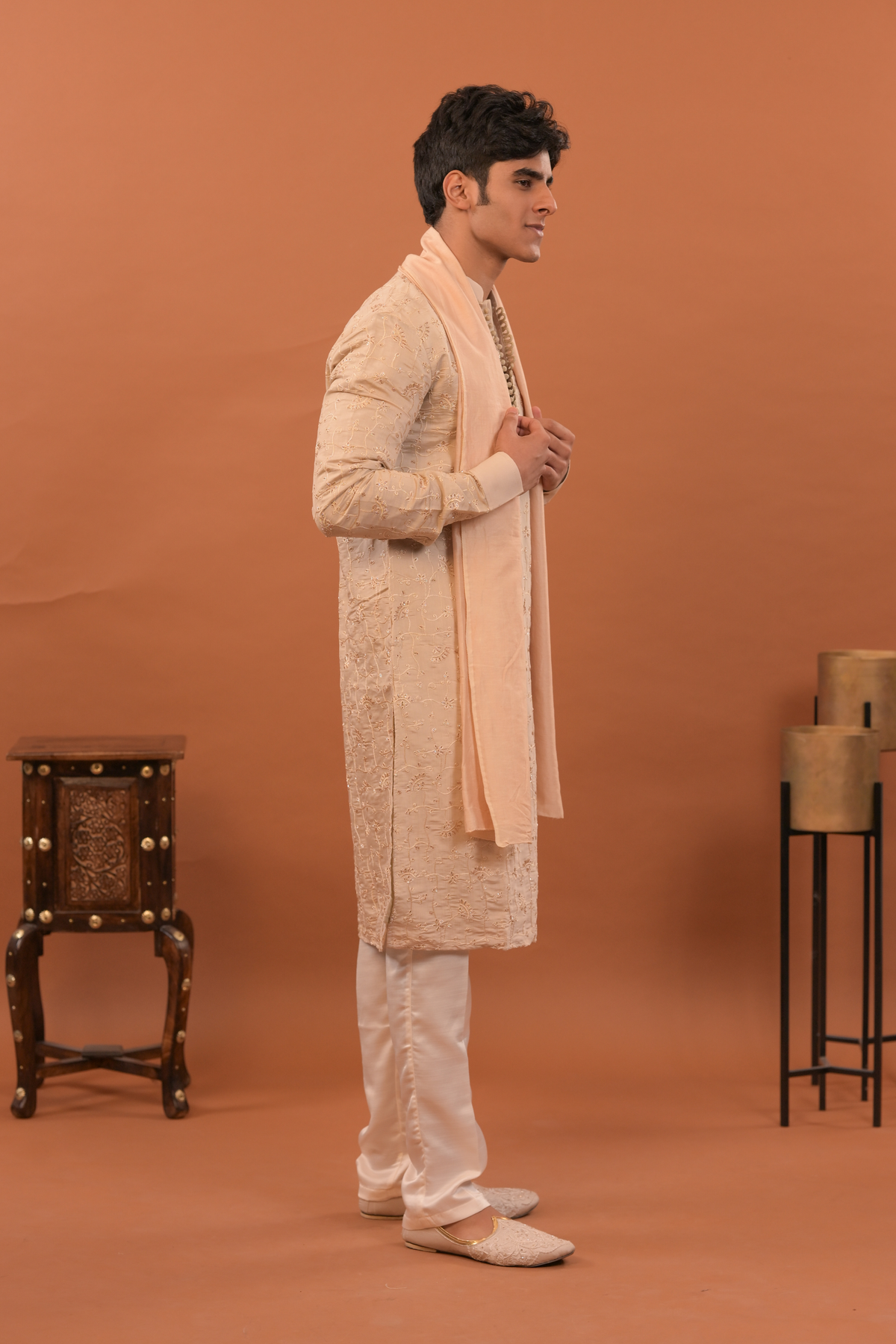 Handwork Beige Mens Kurta & Pants Set | Festive Outfit for men | Groom or Groomsmen outfit