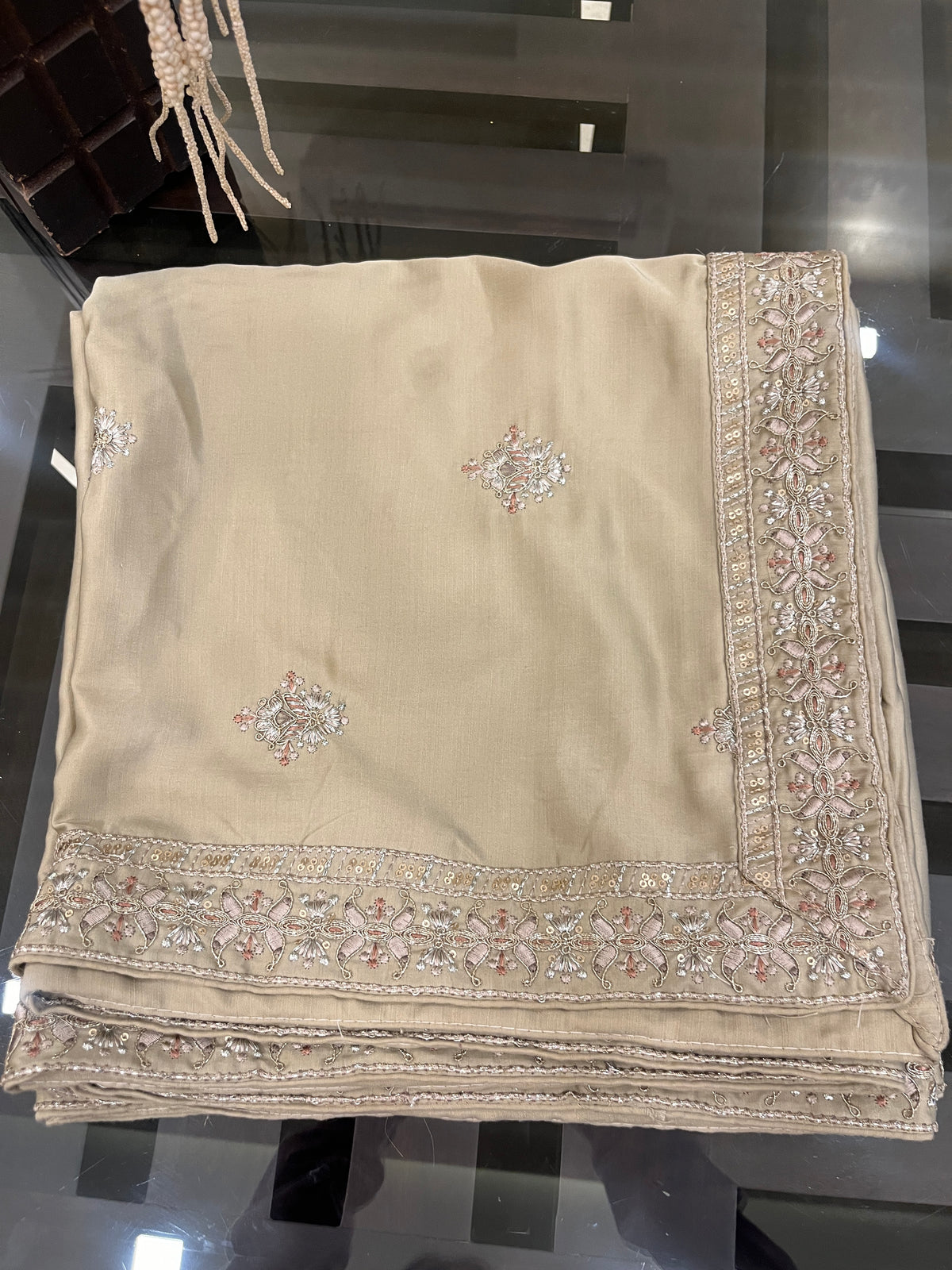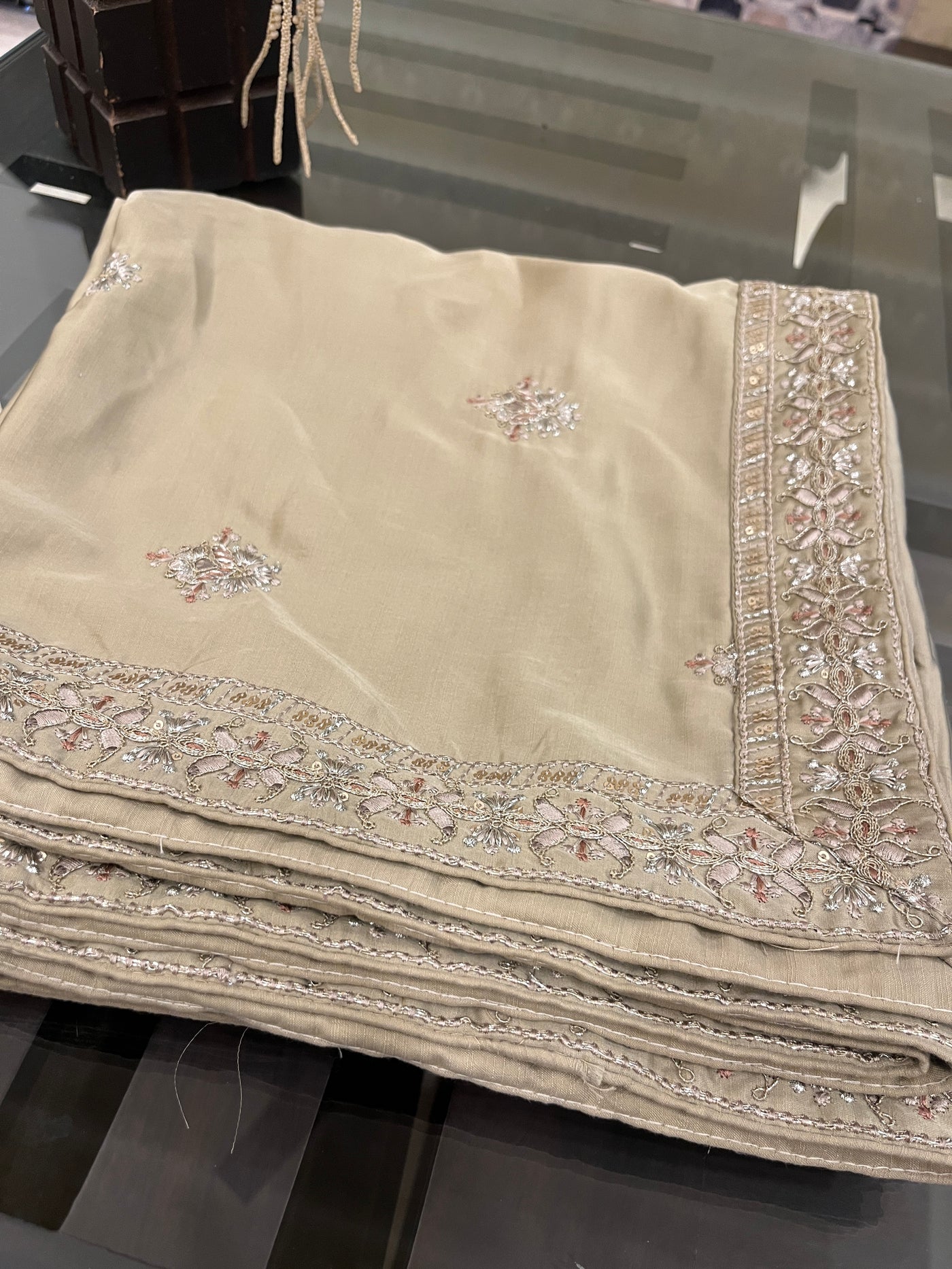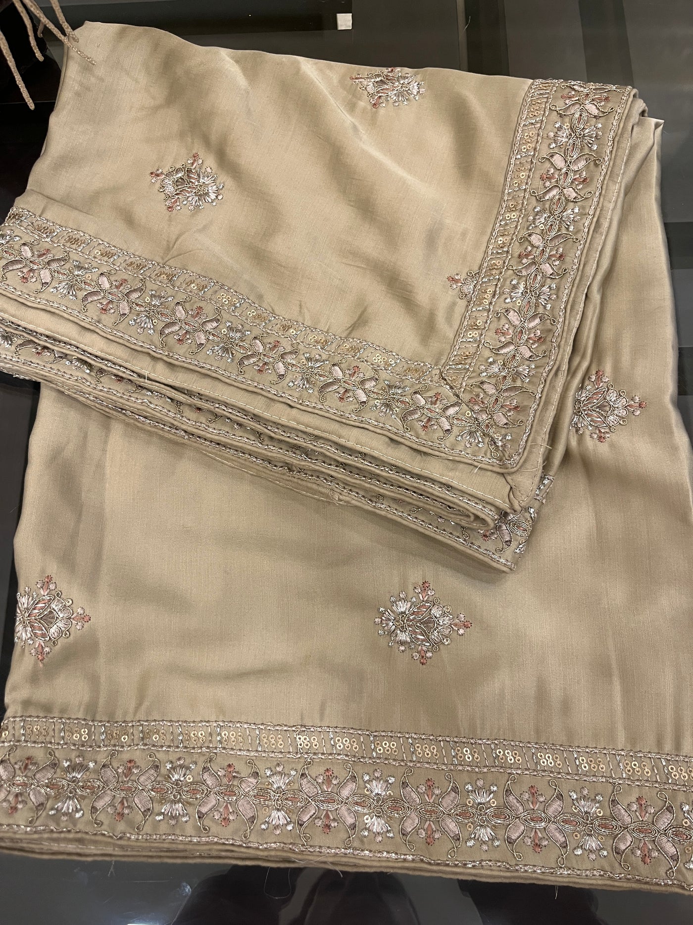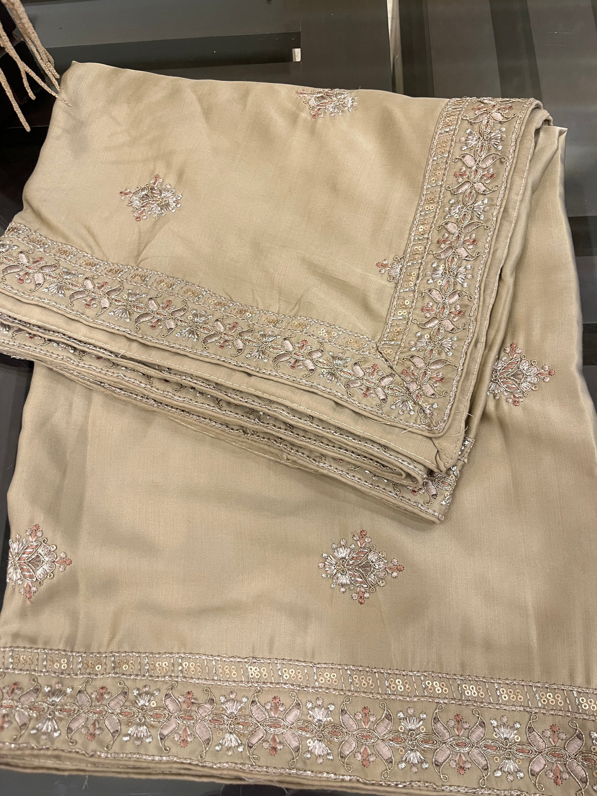 Made from silk fabric, package content: one silk sherwani shawl/dupatta. Measurements(approx.): 230 cm approx. Length, width: 55 cm approx. This shawl is unisex (comfortable for men & women both according to their different use) Handmade sherwani dupatta and best for all types of sherwani suite. This is handmade item it may be little different in terms of stone lace. More colours and options also available.